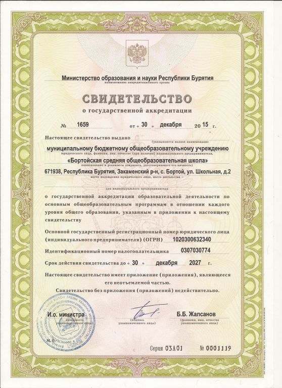 - Места проведения государственной итоговой аттестации: 671950, Республика Бурятия, Закаменский район, улус Бортой, улица Школьная, 2